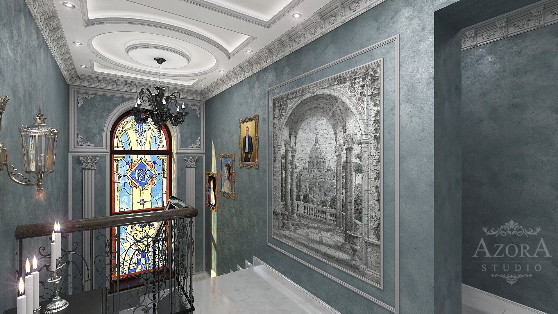Отделка коридора декоративным камнем и декоративной штукатуркой