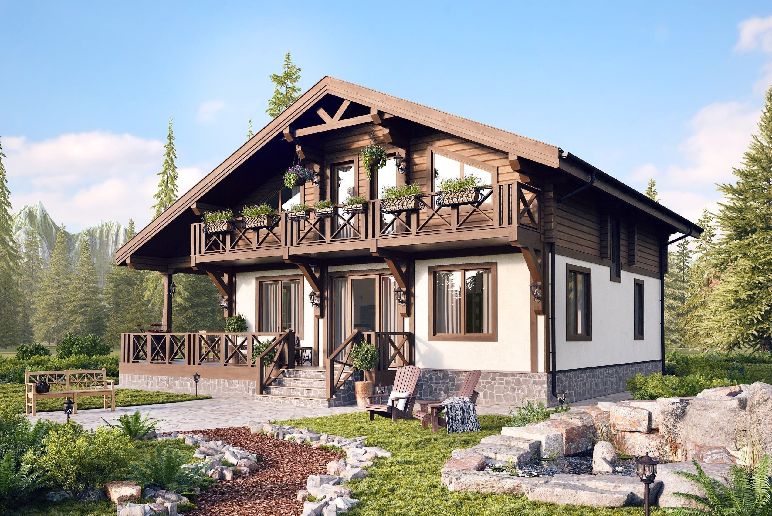 Дом с бассейном и навесом 10*8 в стиле Шале