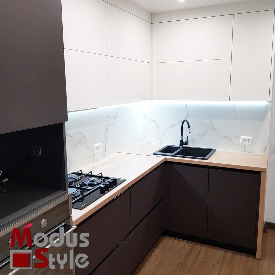 При образная кухня в стиле Модерн с темным цветовым сочетаниям