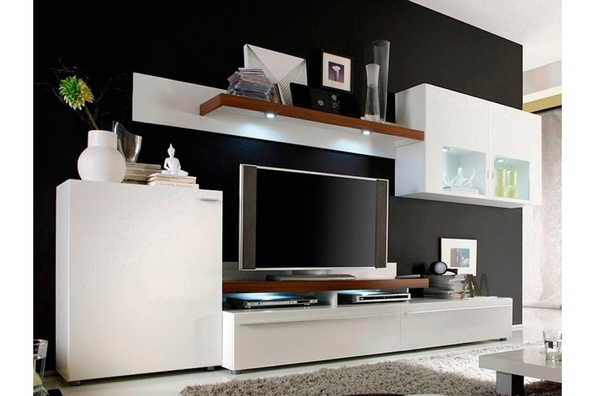 Гостиная подвесная Лия 3 МДФ, 2460х1800х314, венге/белый глянец