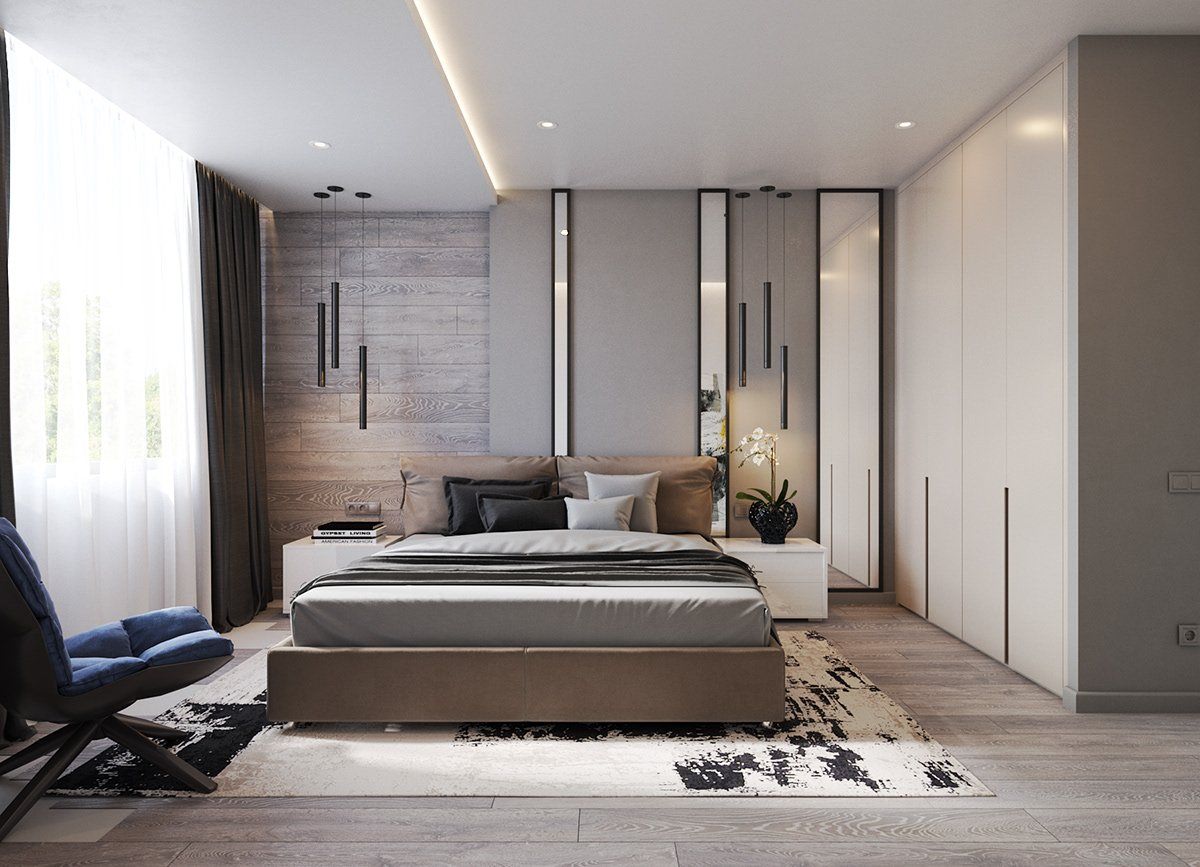Современная серая спальня