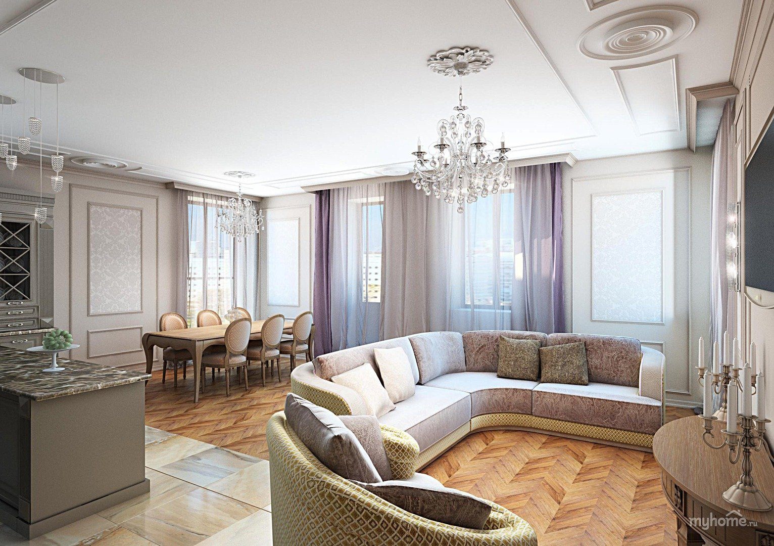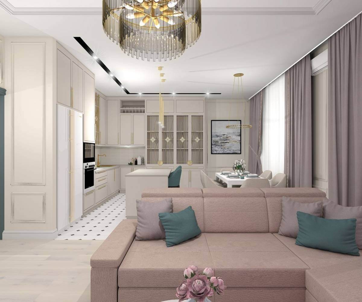 Кухня-гостиная 40м2 в стиле Неоклассика