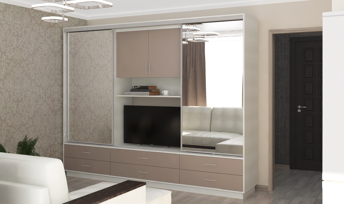 Шкафы-купе в гостиную с телевизором