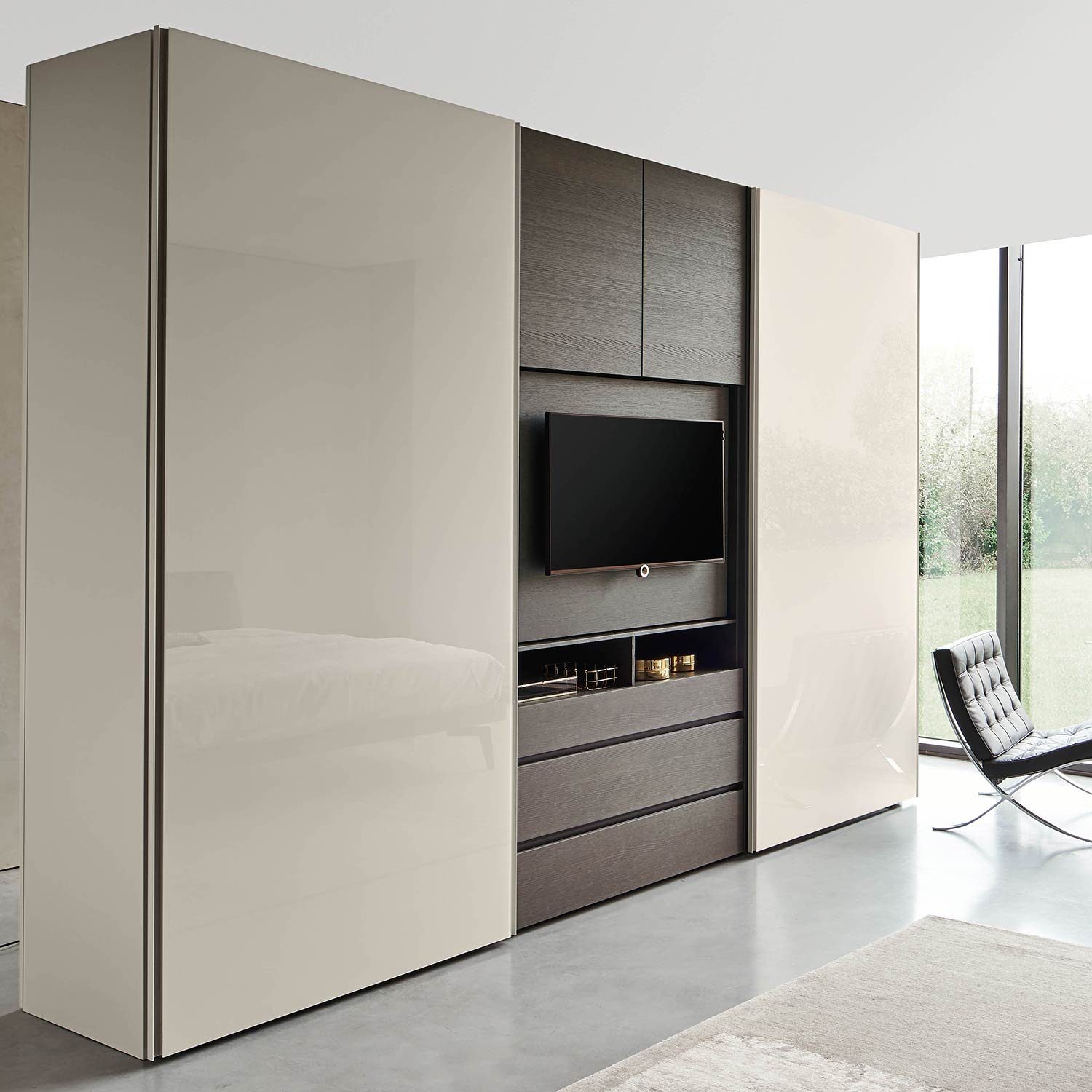 Телевизор встроенный в шкаф в спальне