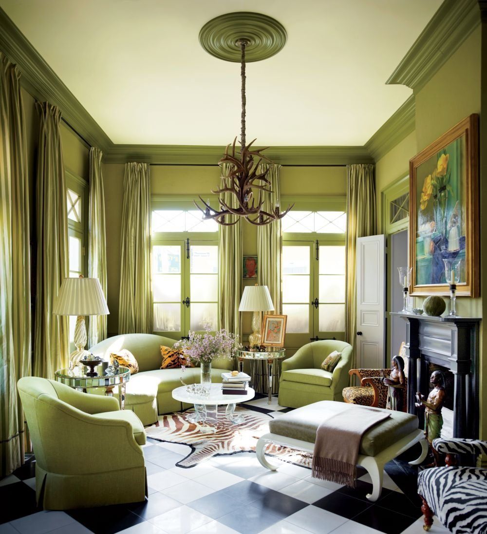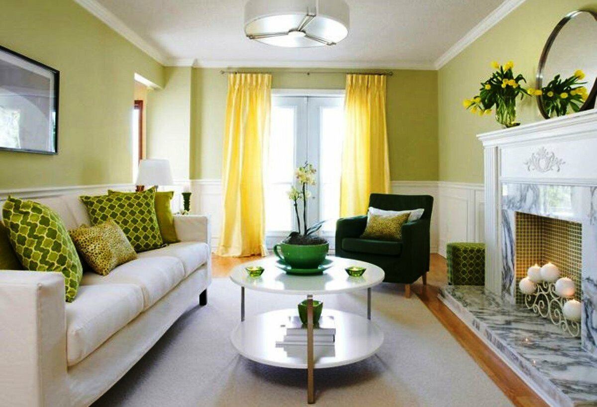 Оливковый цвет в интерьере гостиной