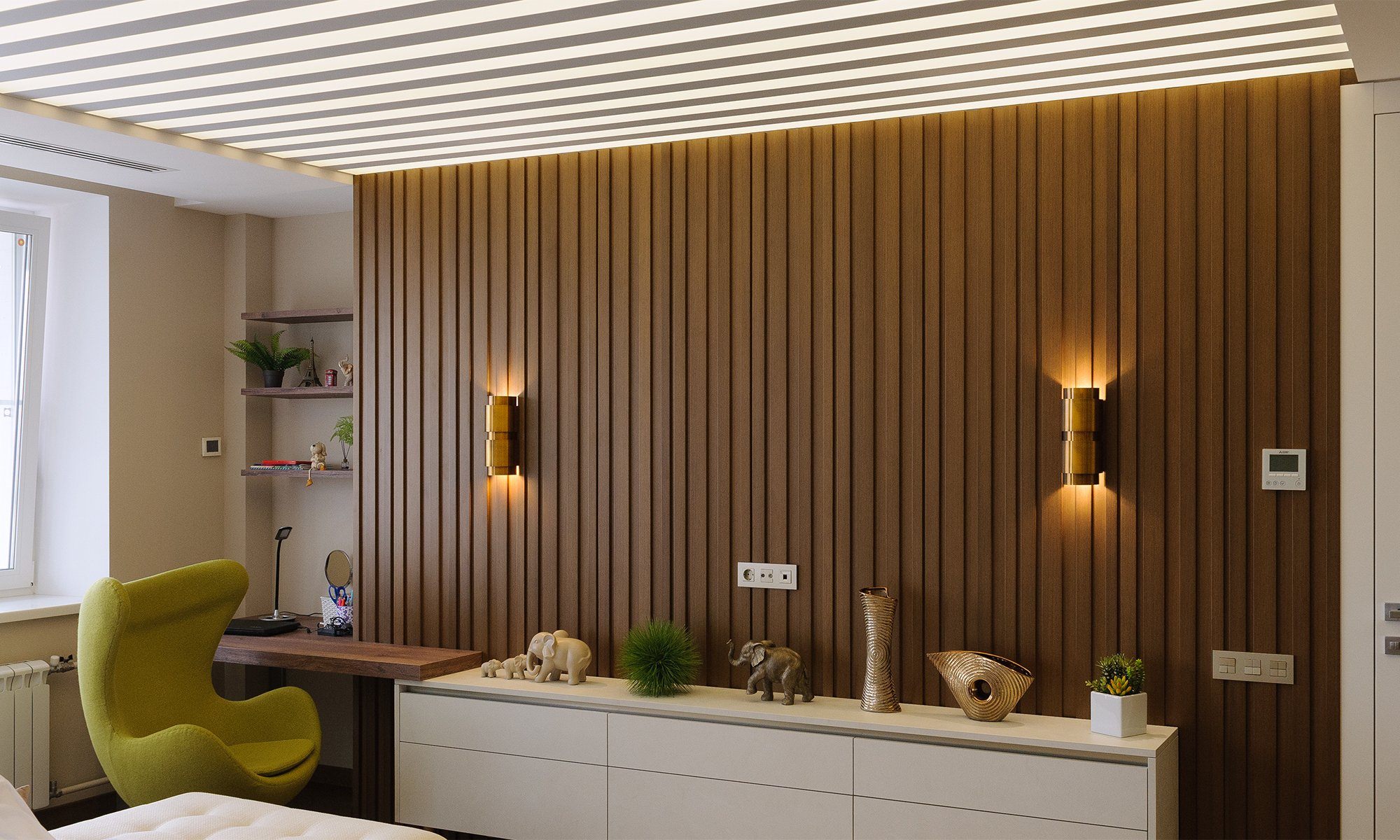 Деревянные планки в интерьере