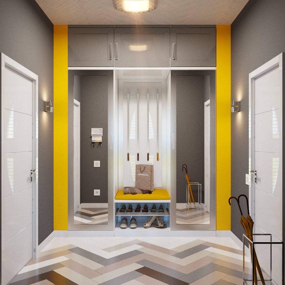 Прихожая серая с желтым