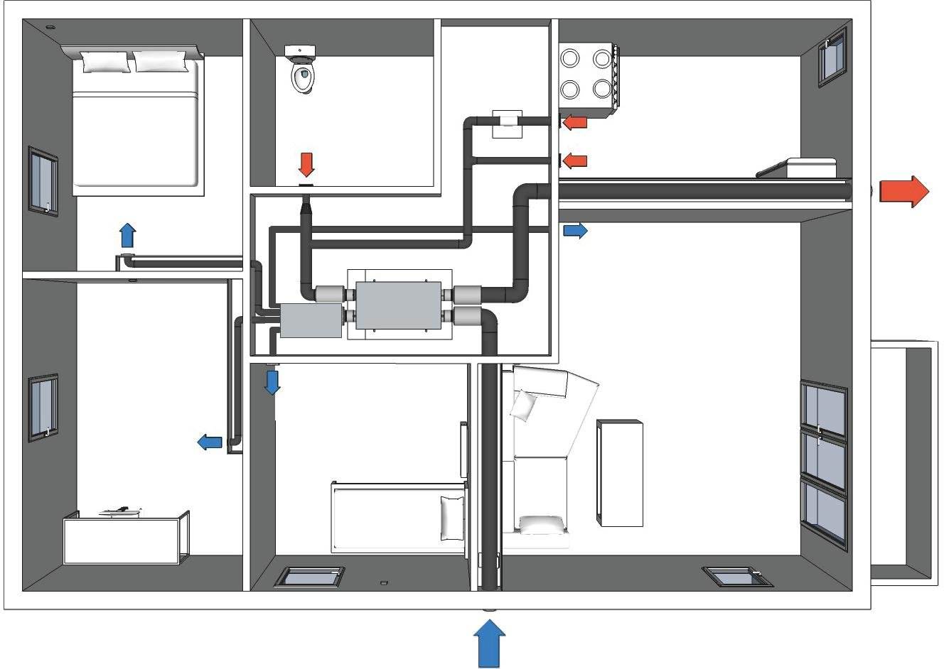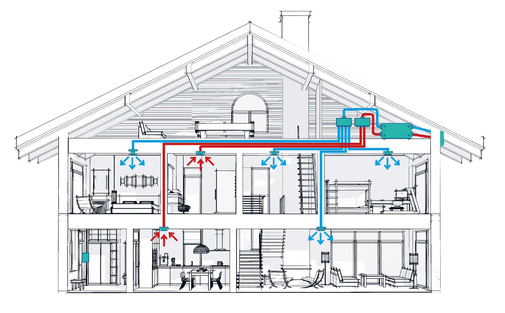 Схема приточно-вытяжной вентиляции в частном доме через стены