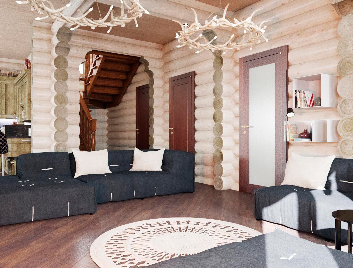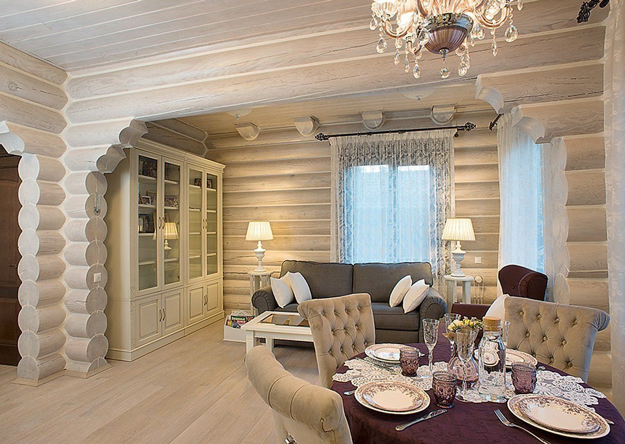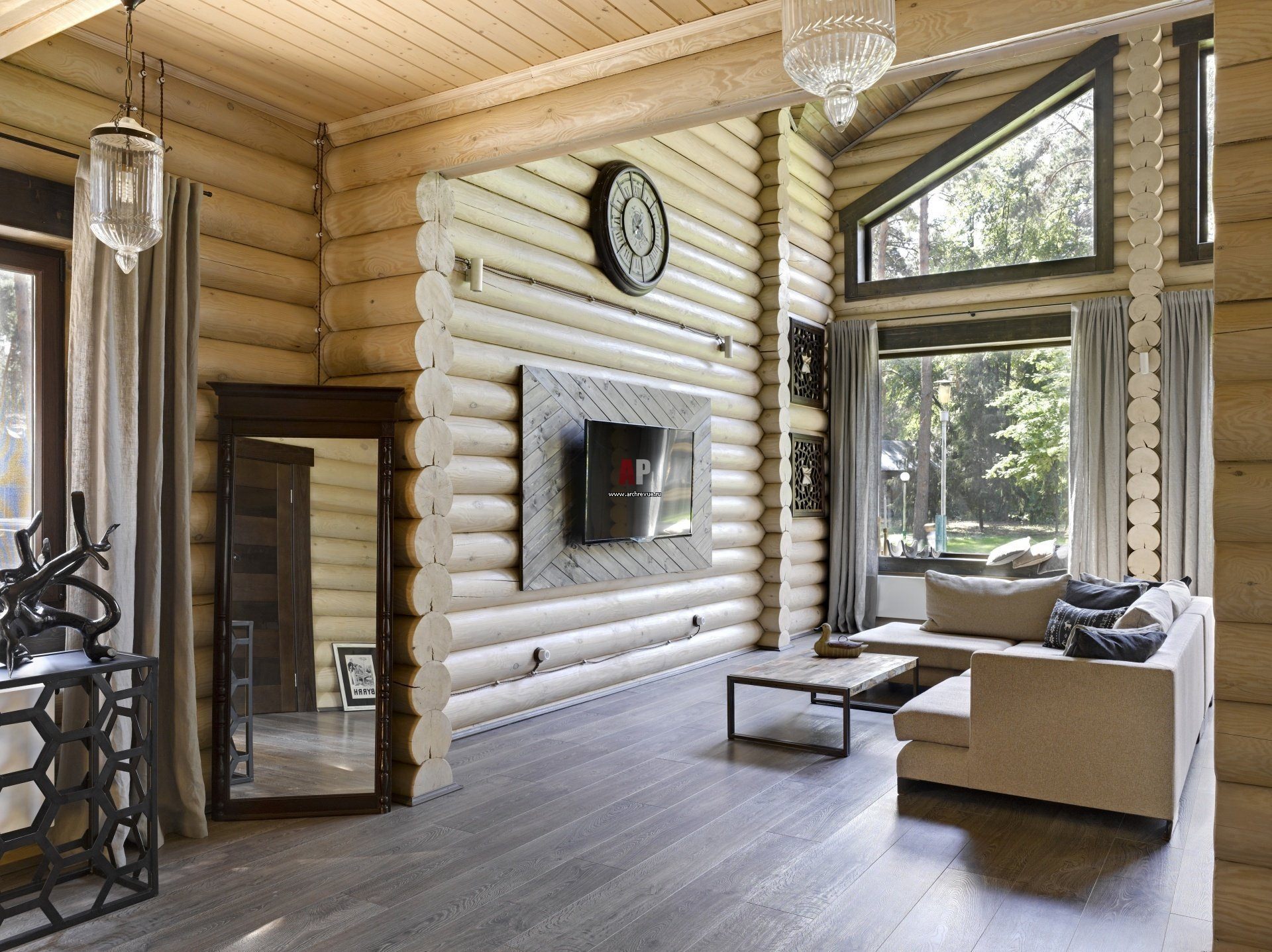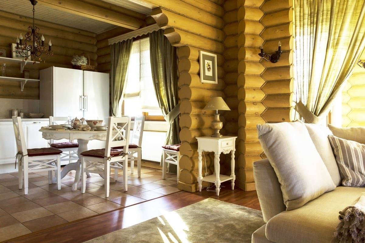 Дом из оцилиндрованного бревна интерьер кухня гостиная