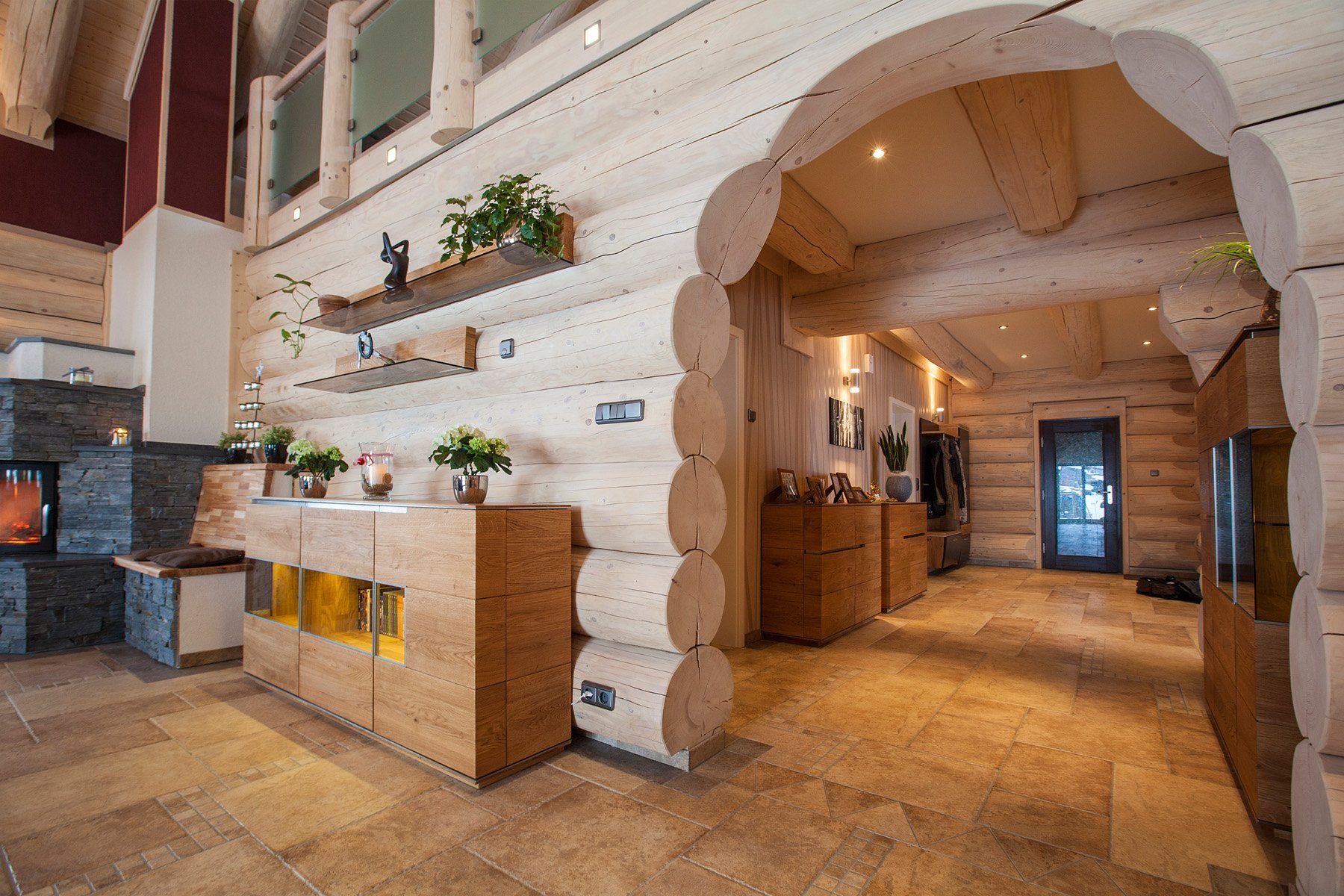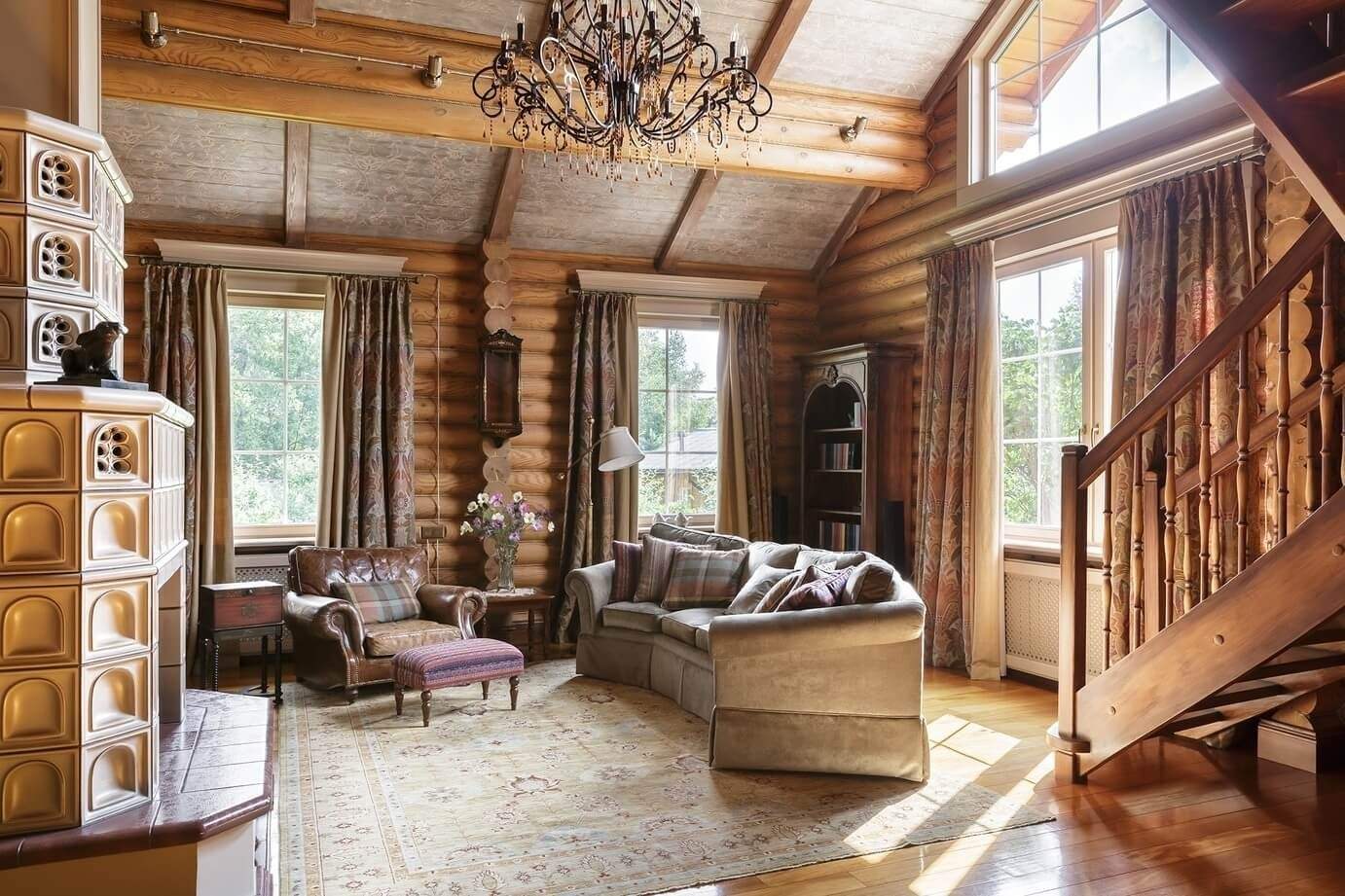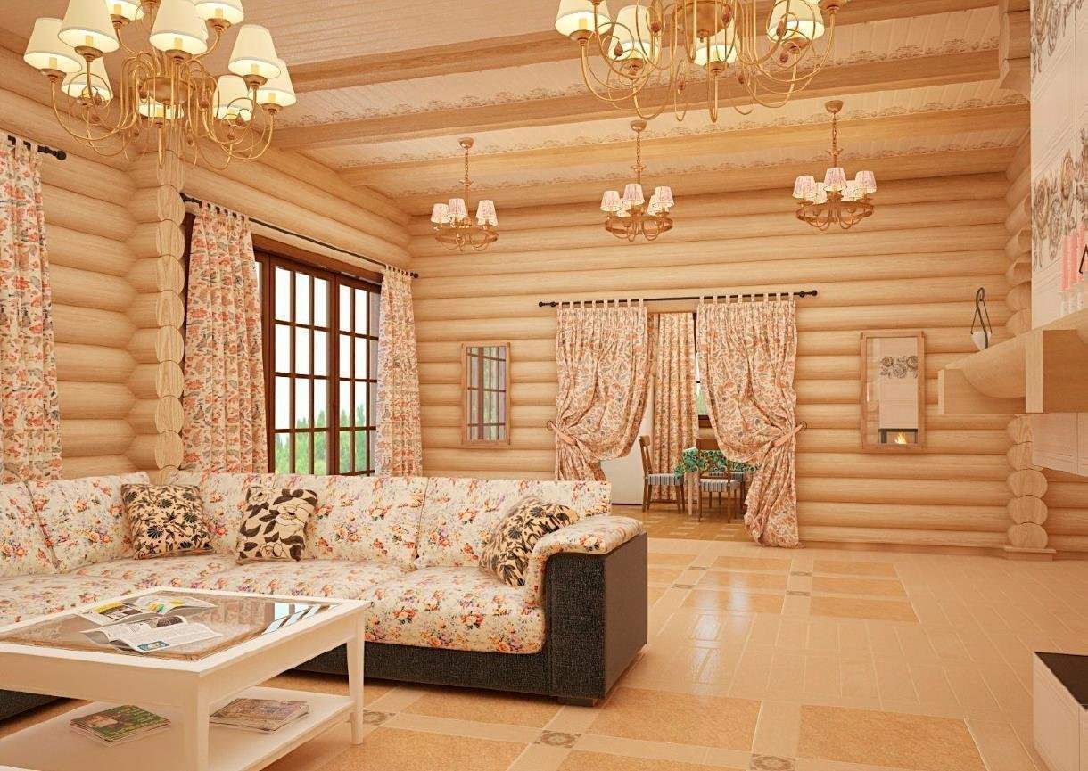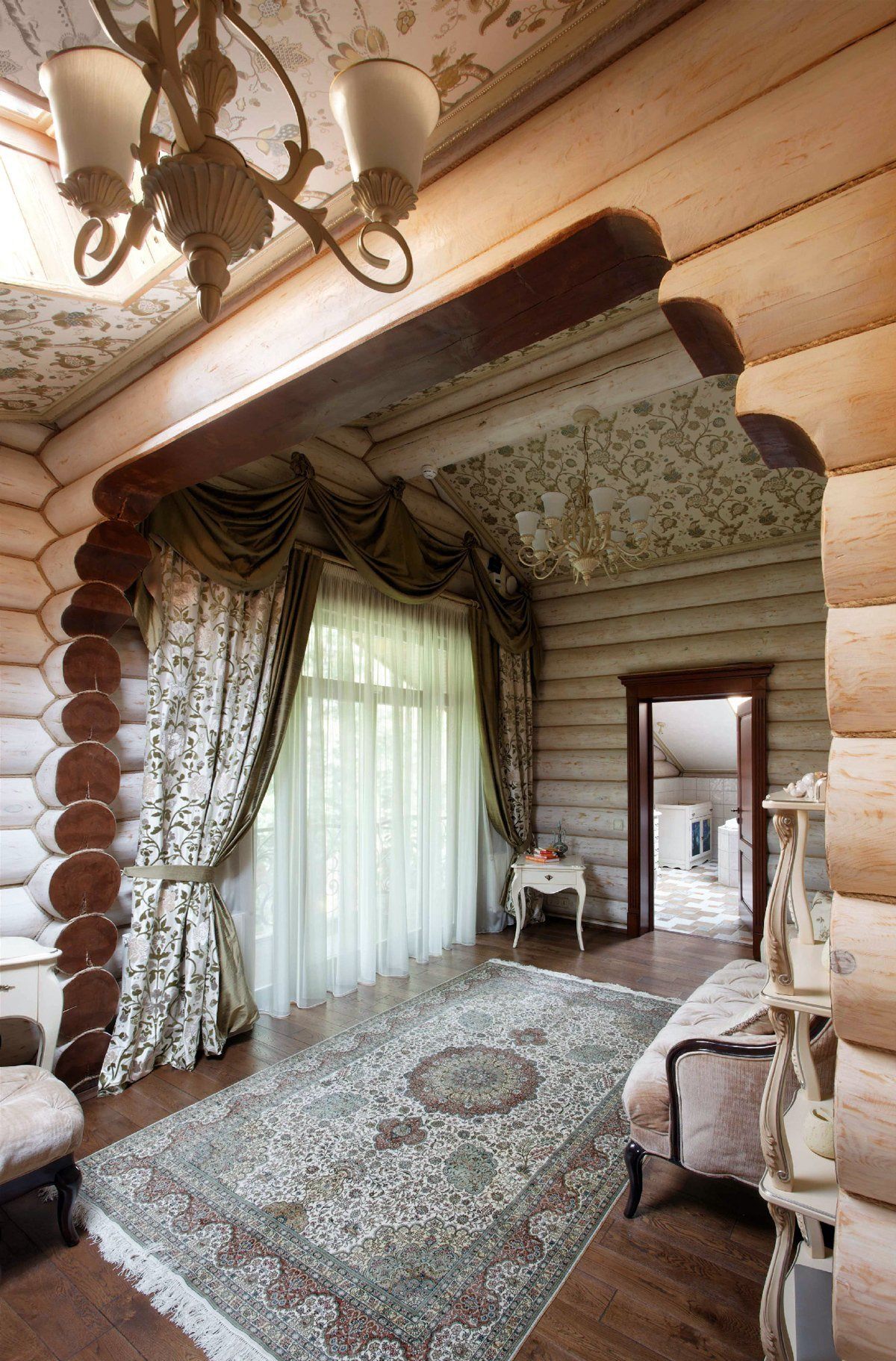 Дом из оцилиндрованного бревна интерьер кухня гостиная