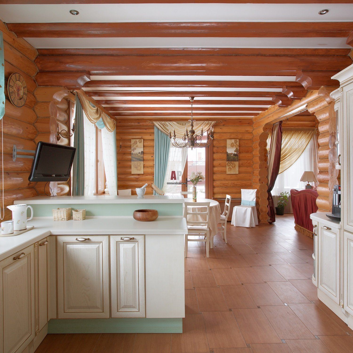 Дом из оцилиндрованного бревна интерьер кухня гостиная