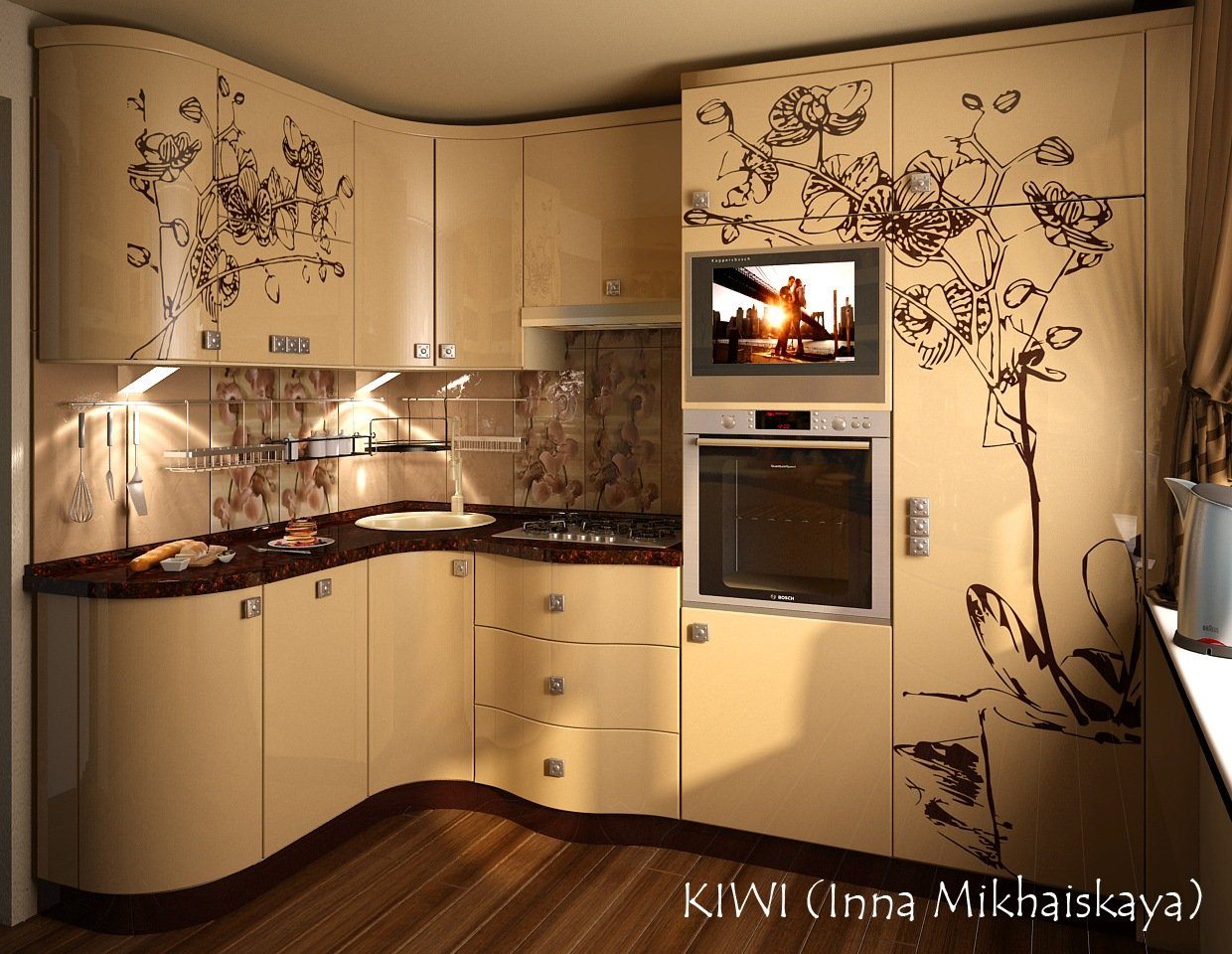 Кухонные гарнитуры с фотопечатью на фасаде угловые
