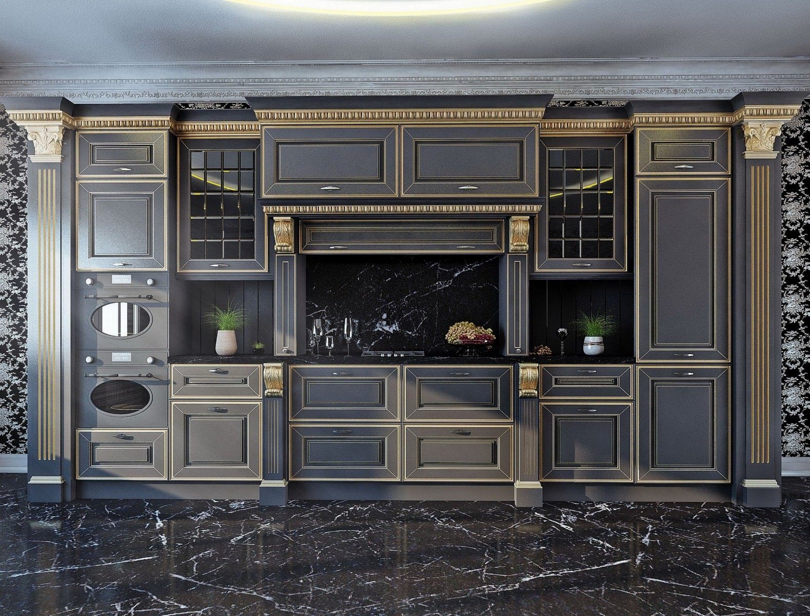 Кухня в классическом стиле в темных тонах