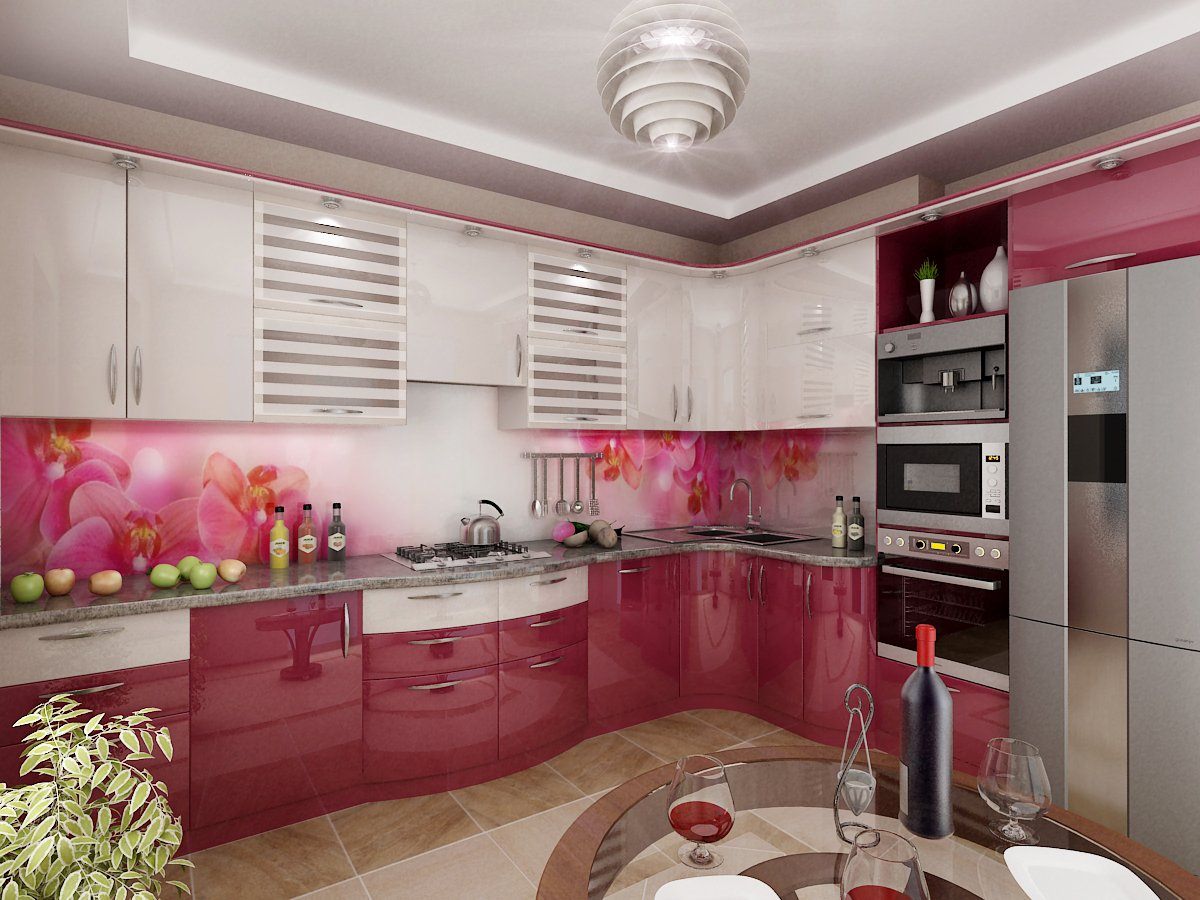 Кухня фуксия в интерьере