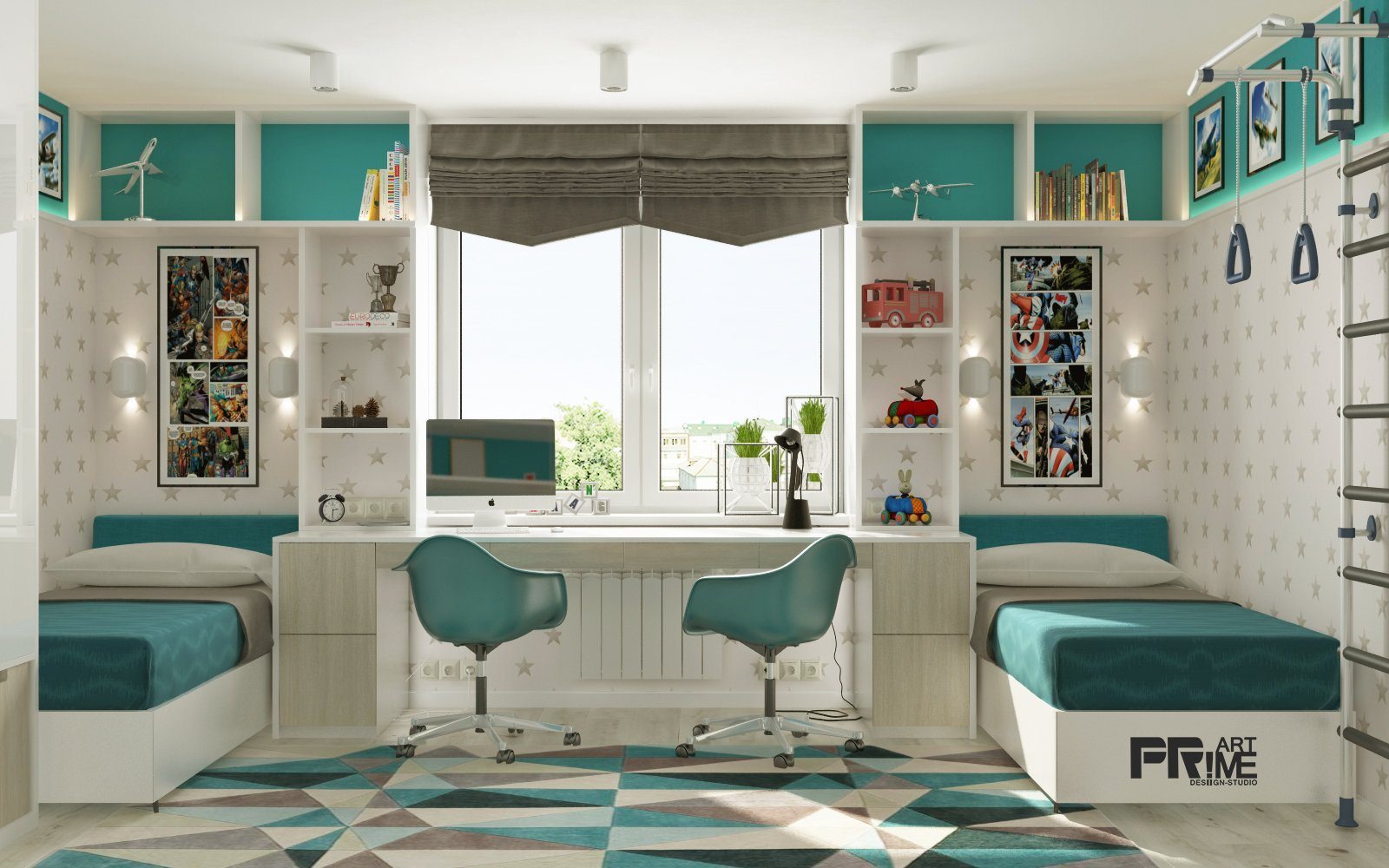 Комната для мальчиков с двумя кроватями разного возраста 11 и 9 лет