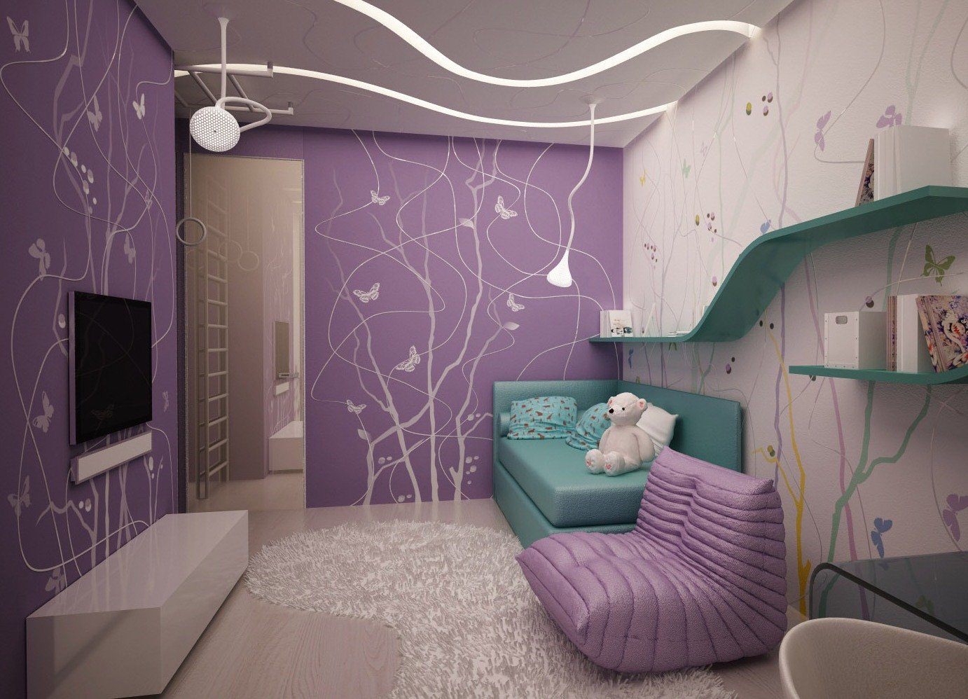 Комната в фиолетовых тонах для девочки подростка