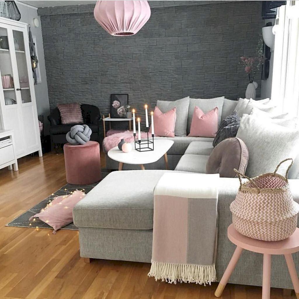 Интерьер гостиной в серо розовых тонах