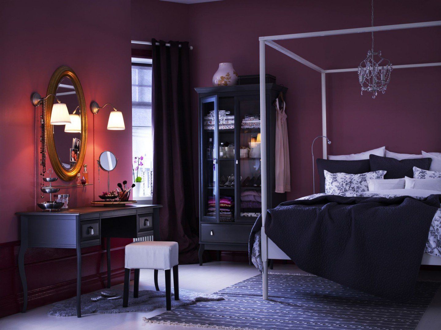 Черная мебель в интерьере спальни икеа