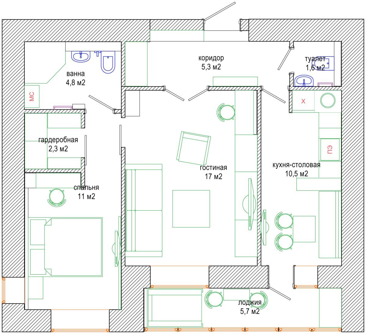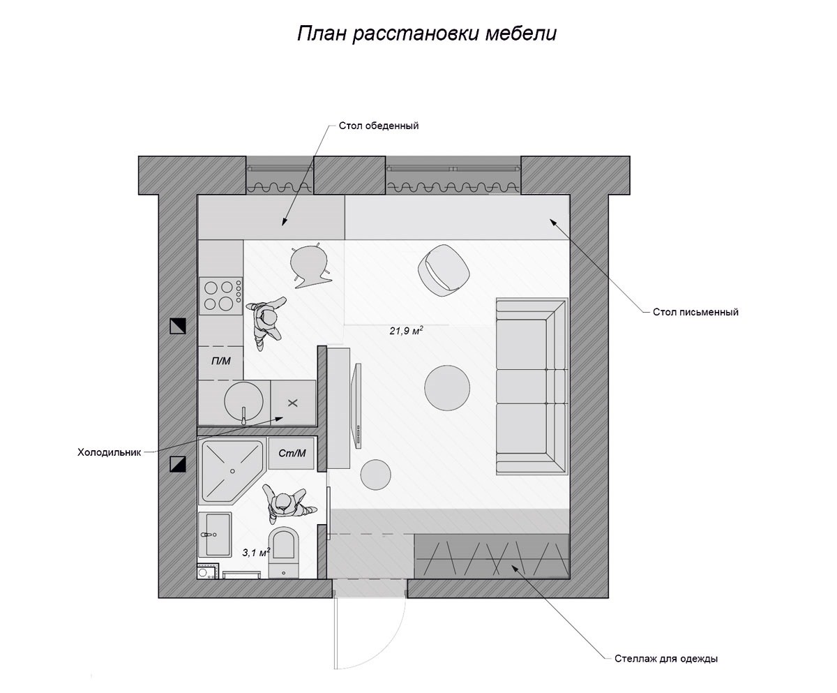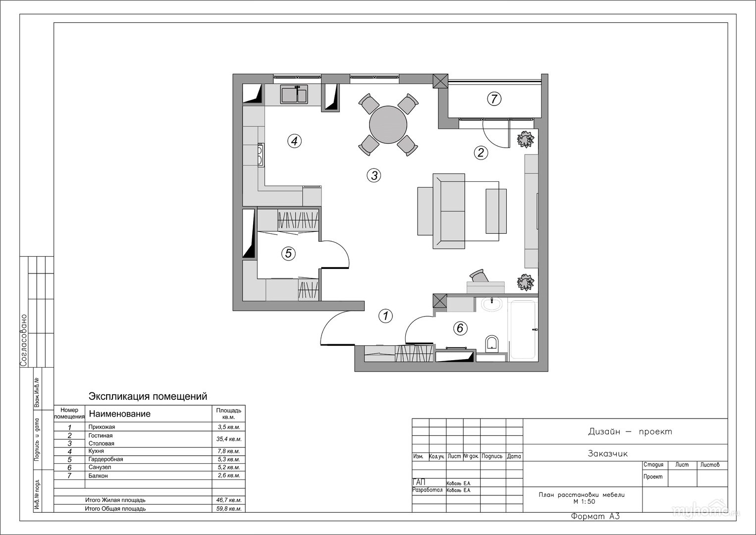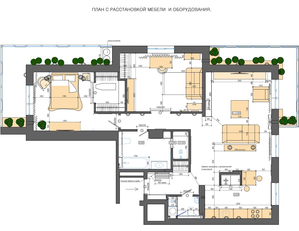Планировка трехкомнатной квартиры с расстановкой мебели