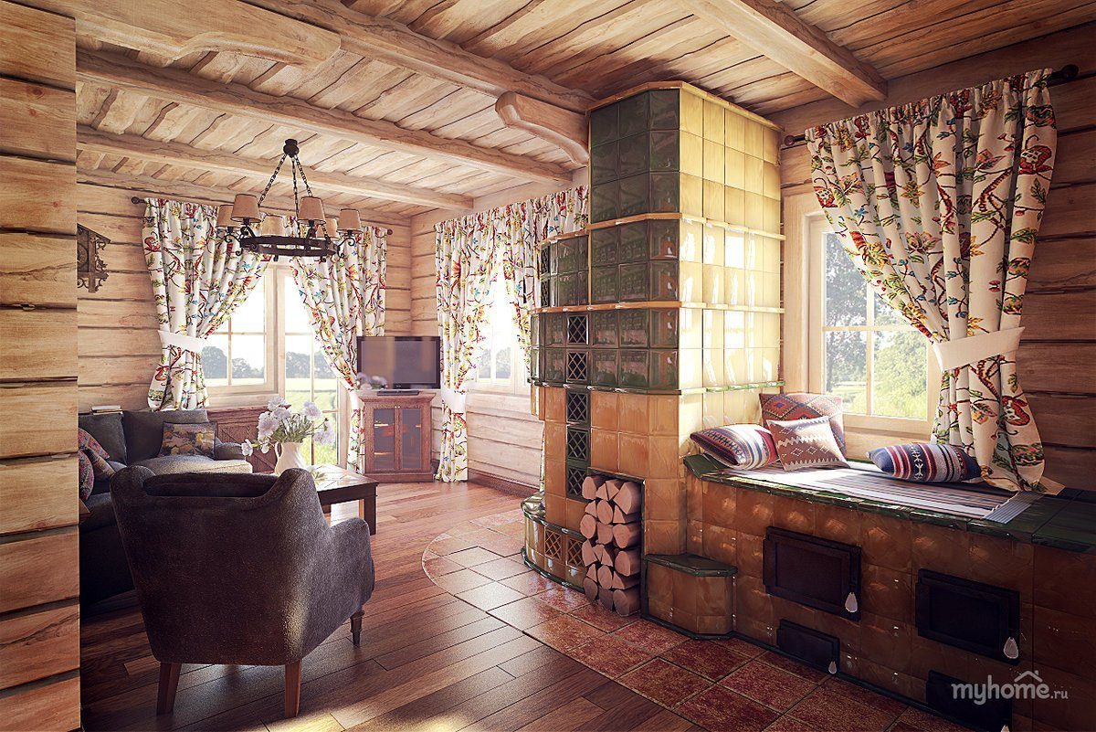 Интерьер в русском стиле в деревянном доме