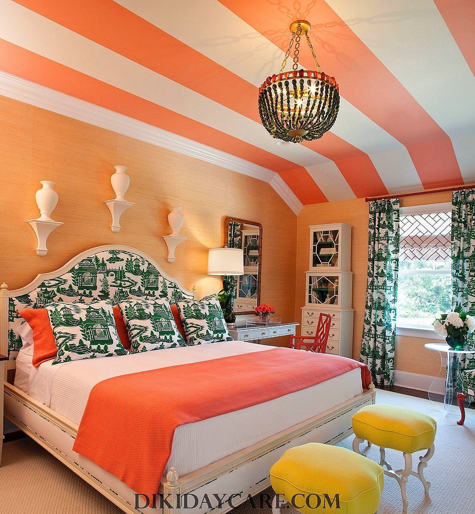 Персиковые стены в спальне