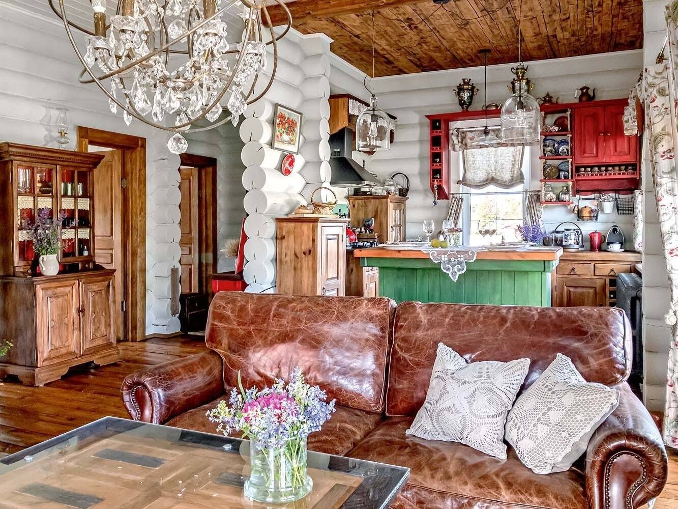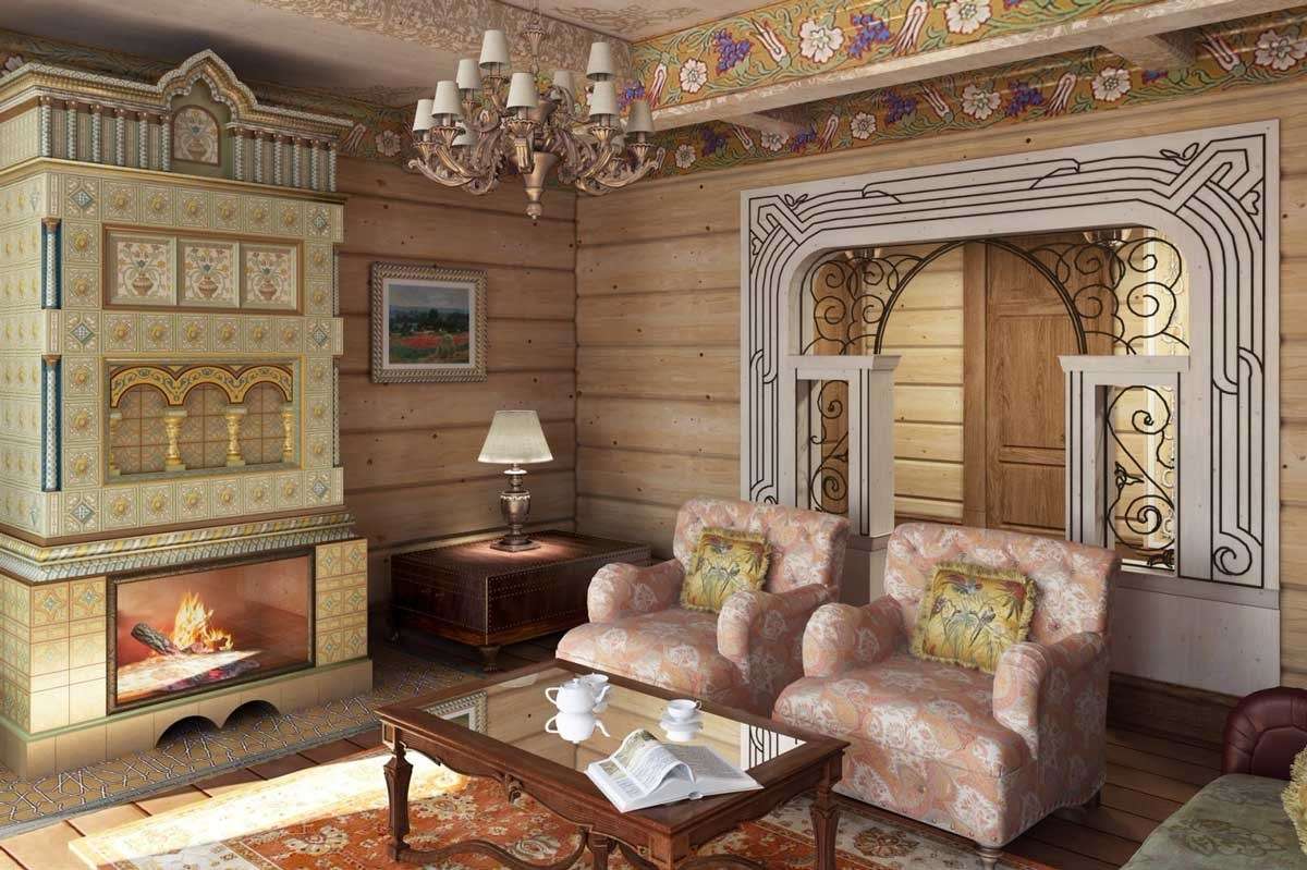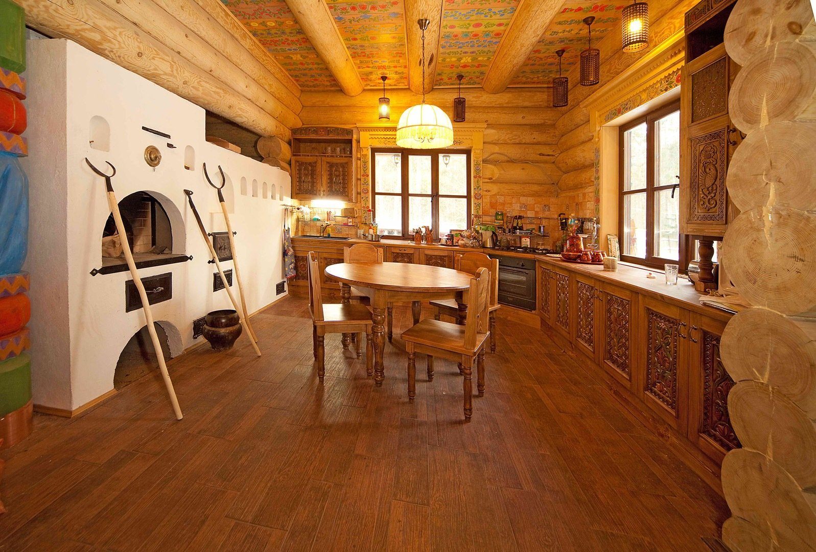 Интерьер спальни в бревенчатом доме в деревенском стиле