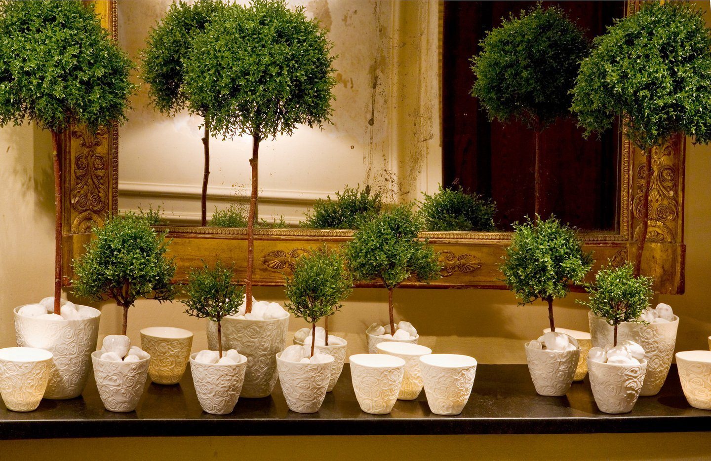 Интерьер помещения с искусственными деревьями