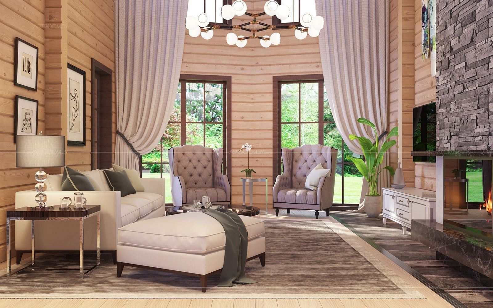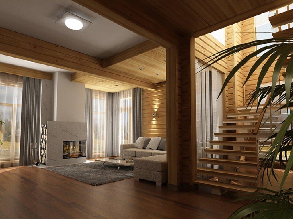 Интерьеры в домах из клееного бруса в скандинавском стиле