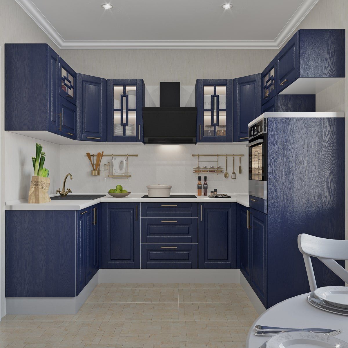 Кухня в бело синих тонах