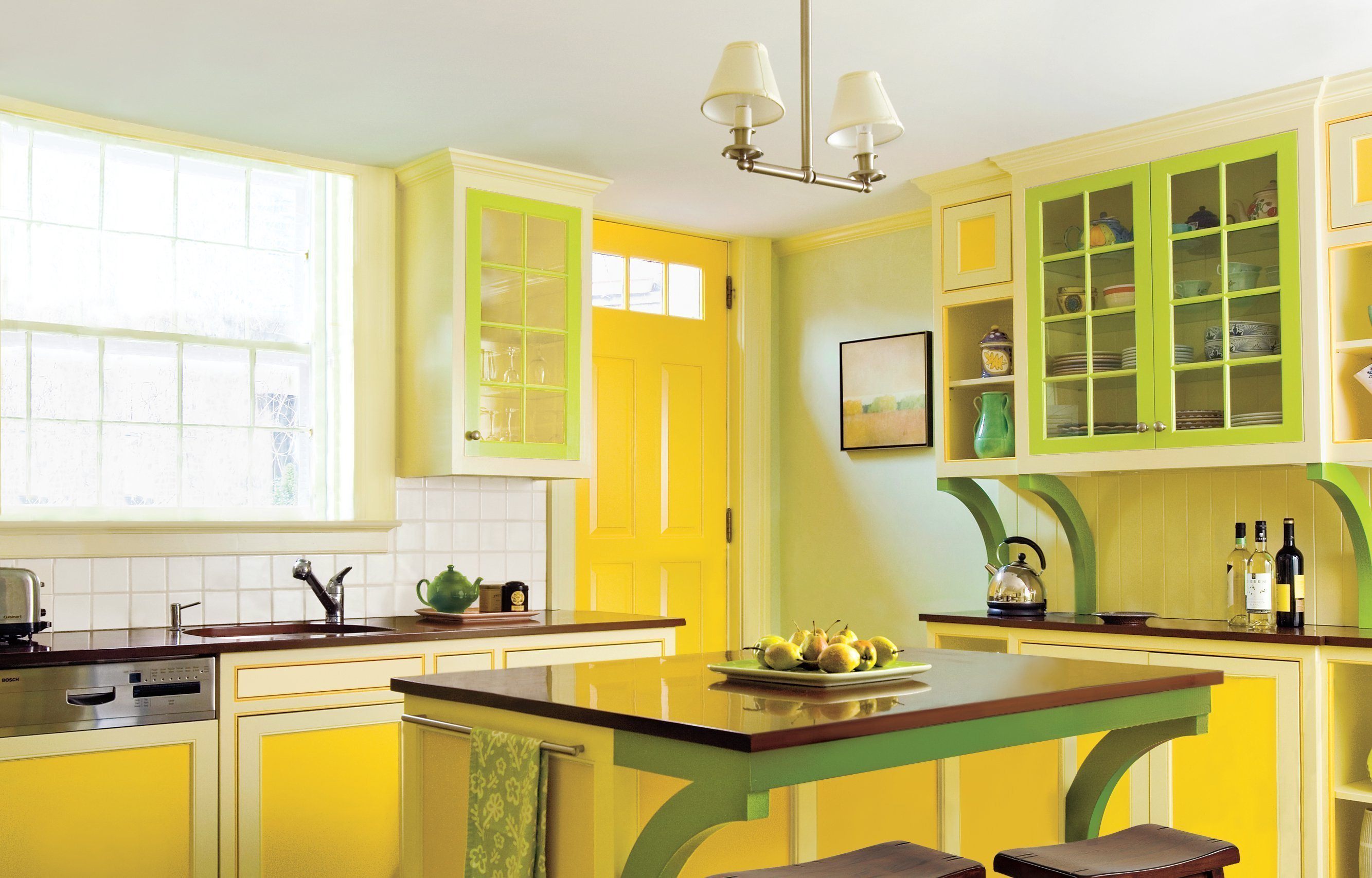 Кухня в желто зеленом цвете