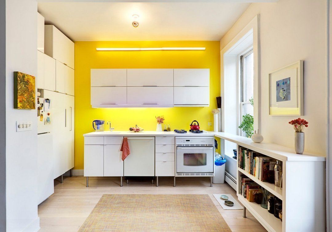 Желтый цвет стен на кухне