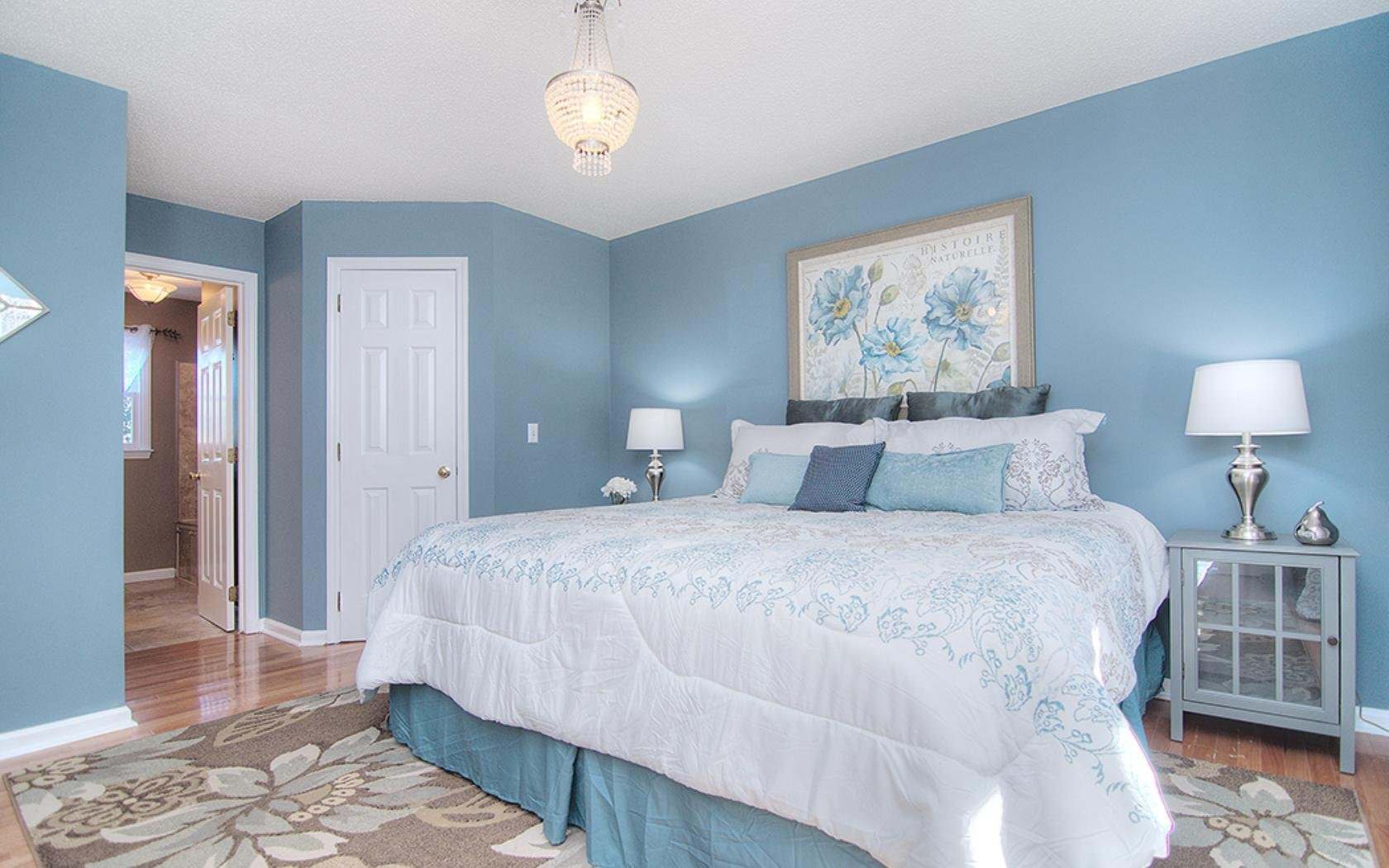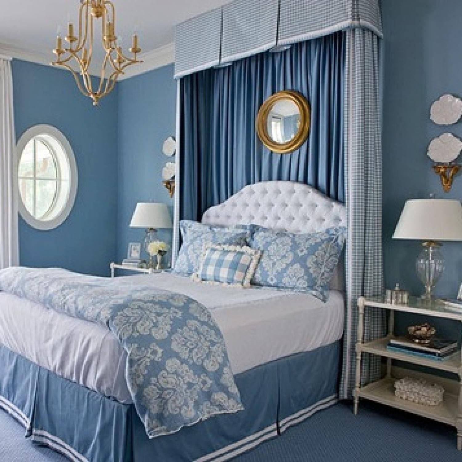 Голубые стены в спальне