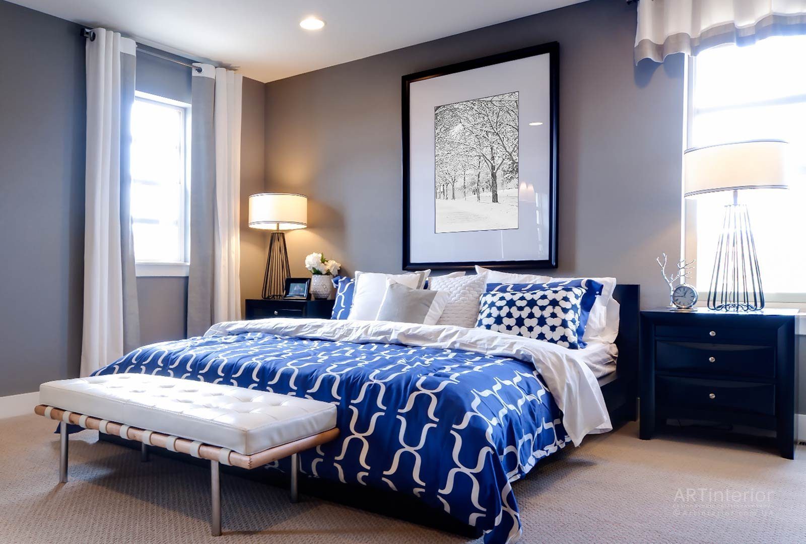 Спальня в сине белых тонах