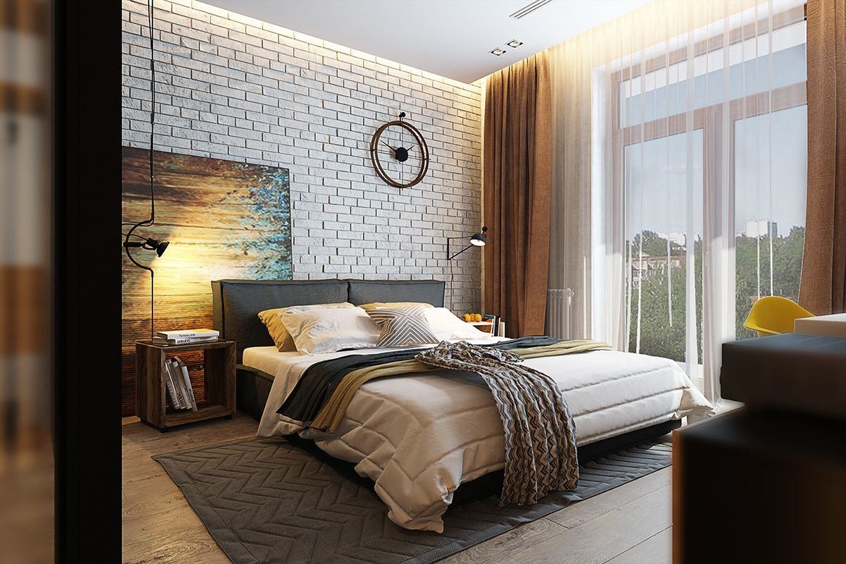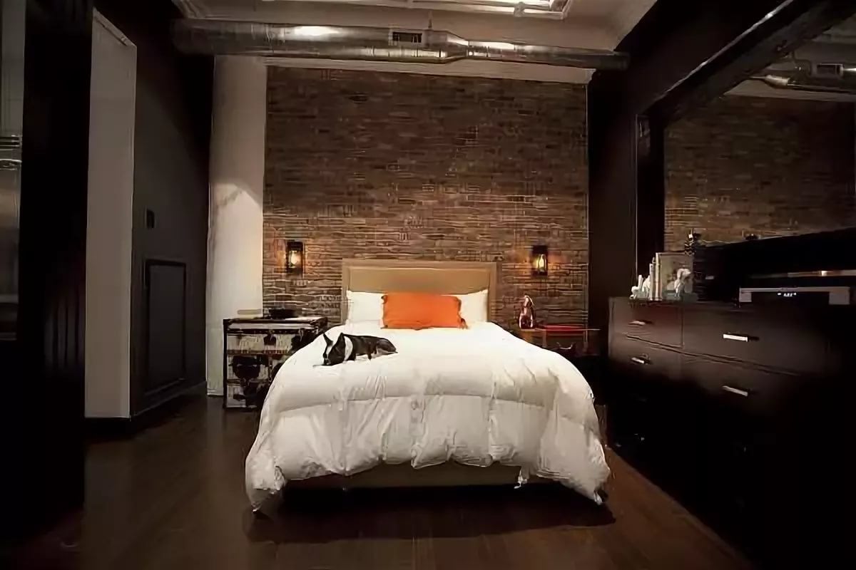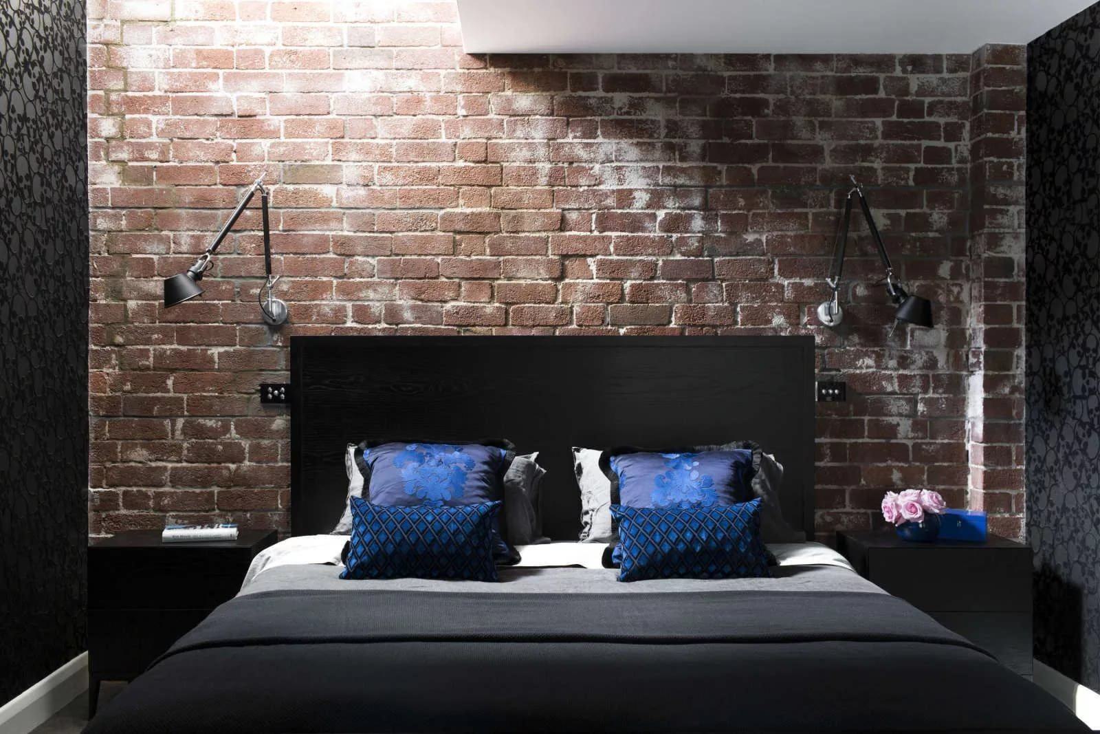 Кирпичная стена в интерьере спальни