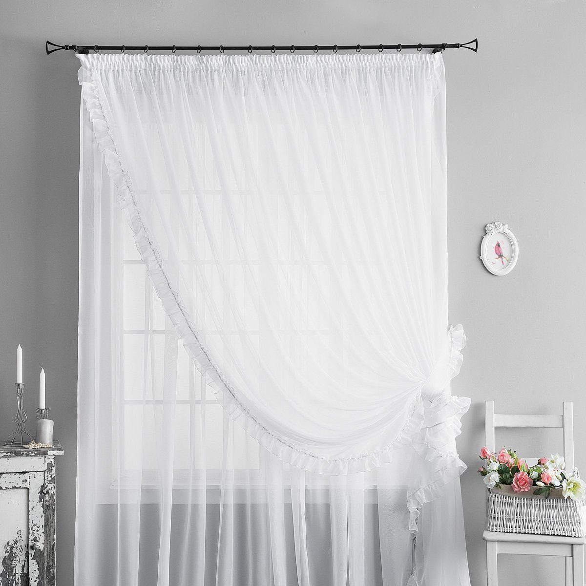 Комплект штор белая Сакура 75*180см/2шт тюль 140*170см/2шт с подхватами