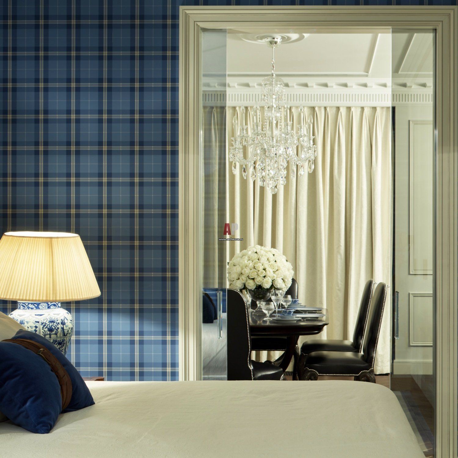 Шотландская клетка в интерьере спальни