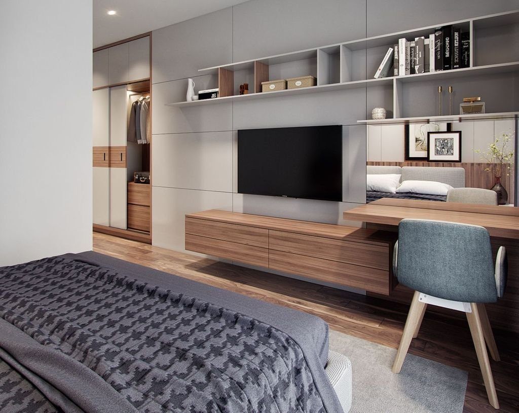 Рабочее место в спальне в современном стиле