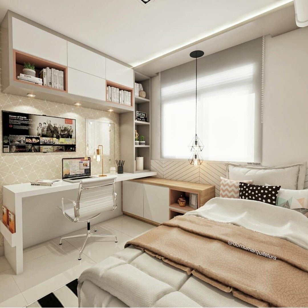 Спальня с рабочим местом у окна
