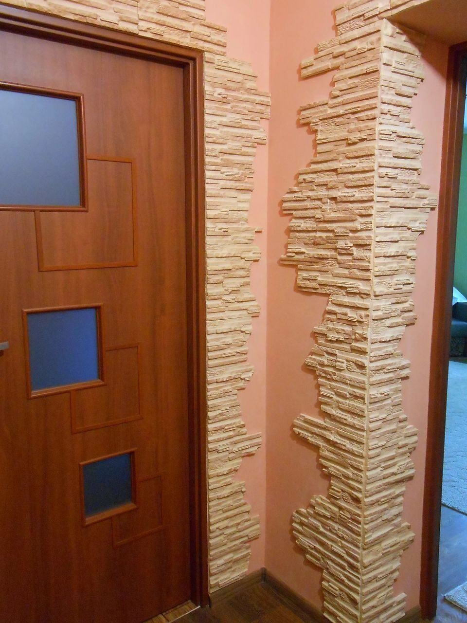 Отделка дверей искусственным камнем