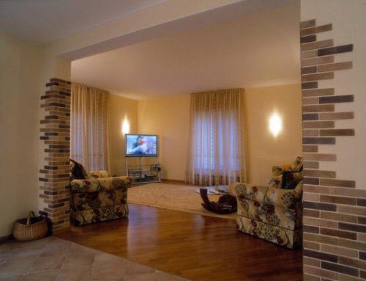 Арка из декоративного камня в гостиной