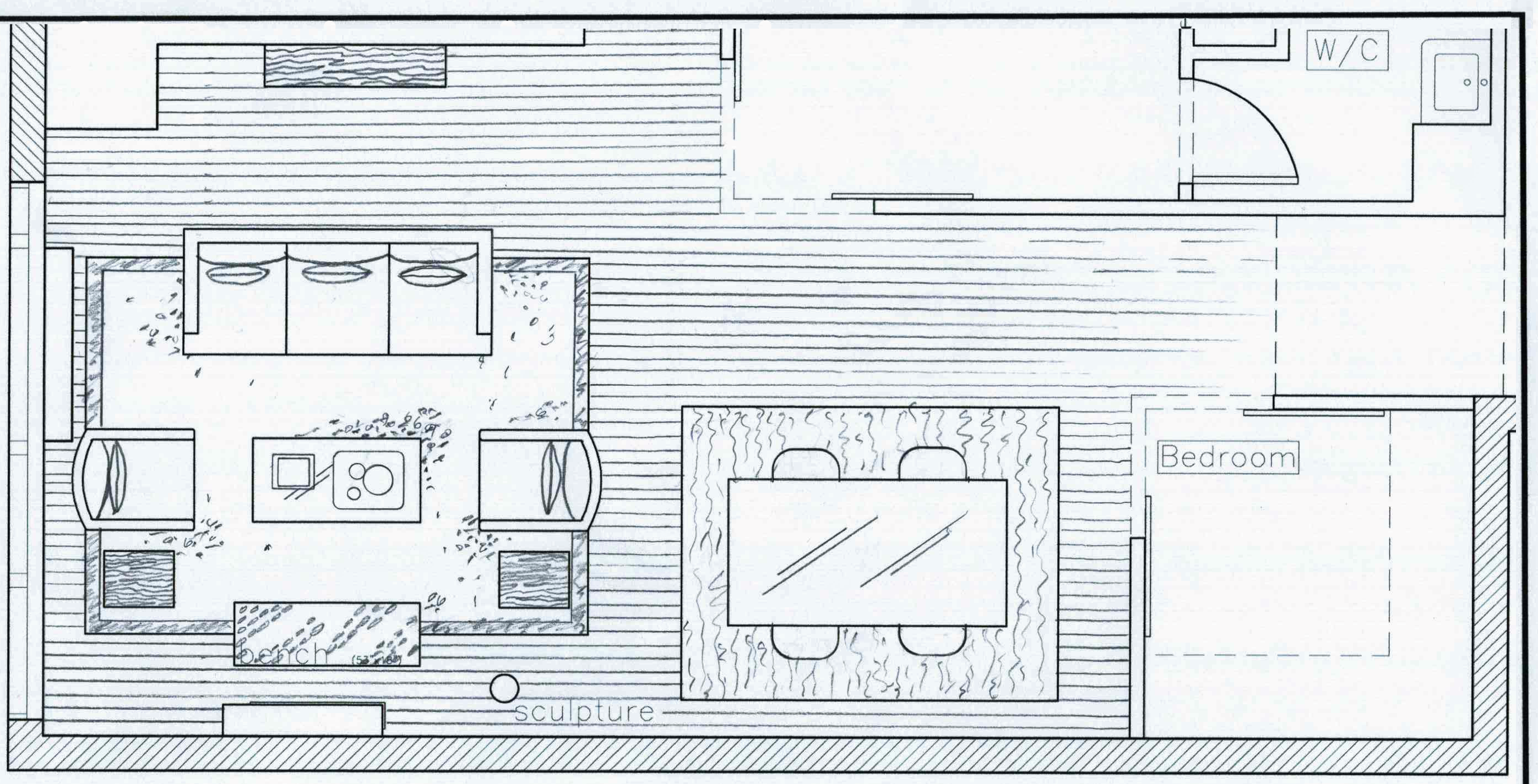 Эскиз расстановки мебели в комнате