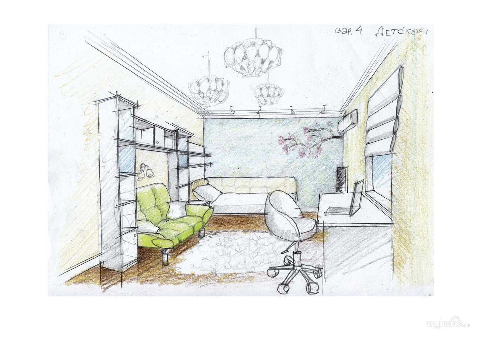 Эскиз интерьера детской комнаты