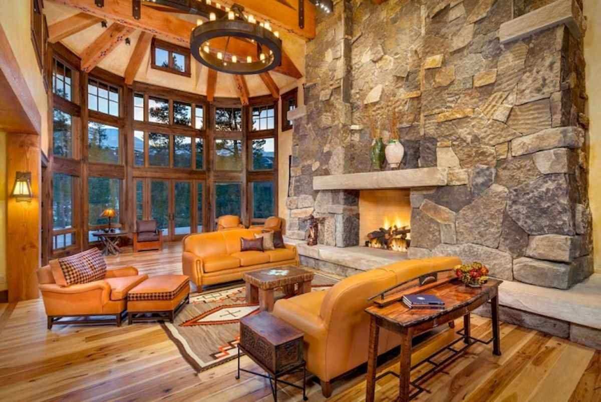 Камин в гостиной в деревенском стиле
