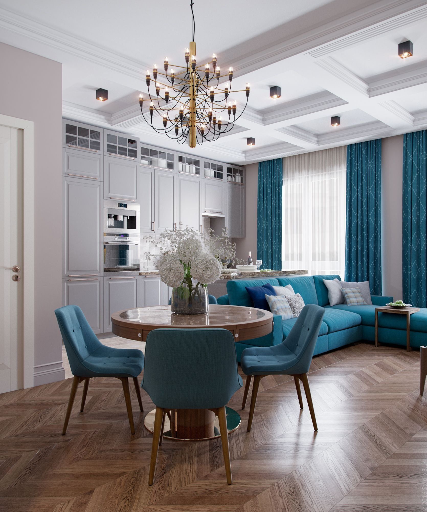 Интерьер кухни в бежевых тонах с яркими акцентами