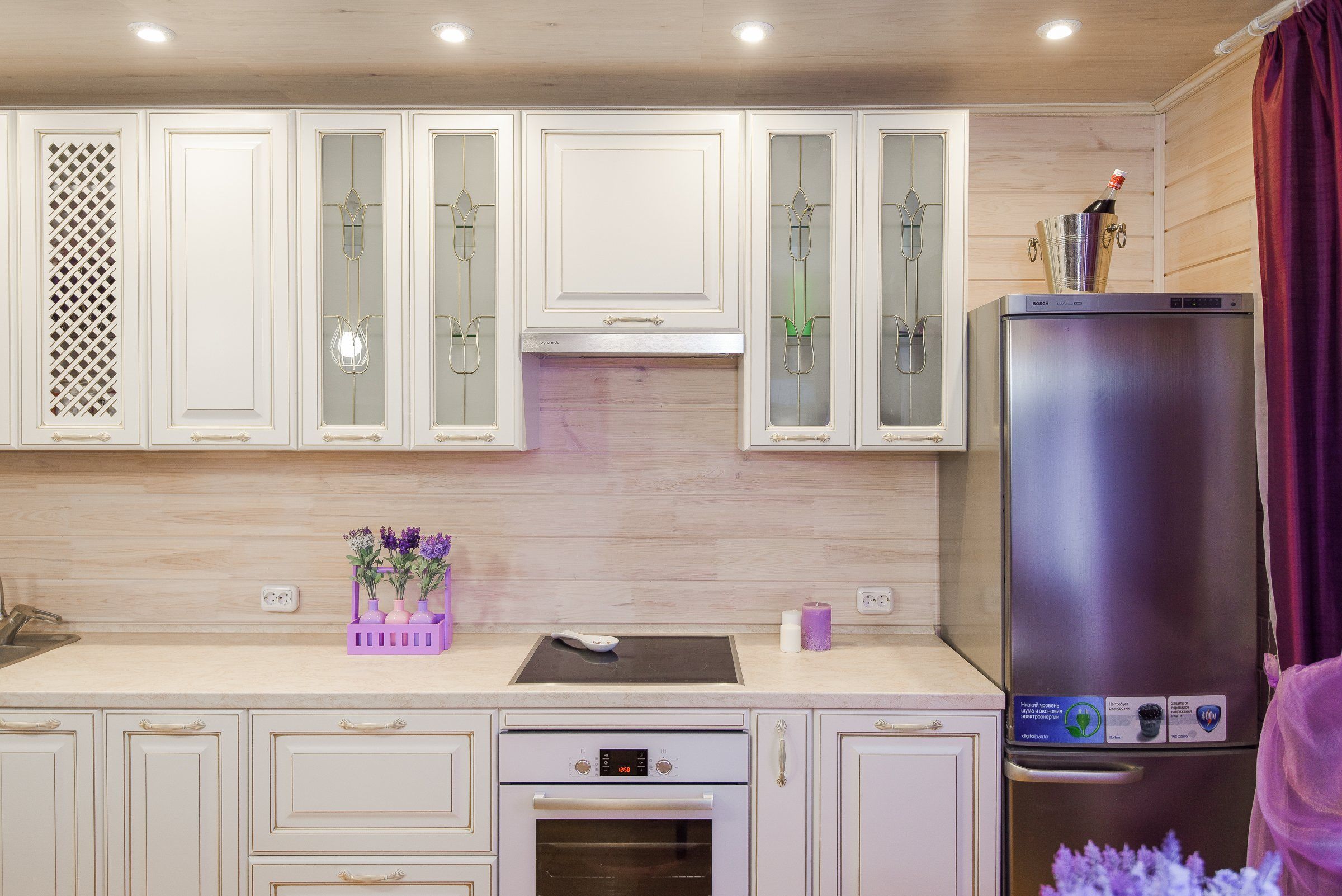Фигурные витрины на кухне в стиле Нео классике