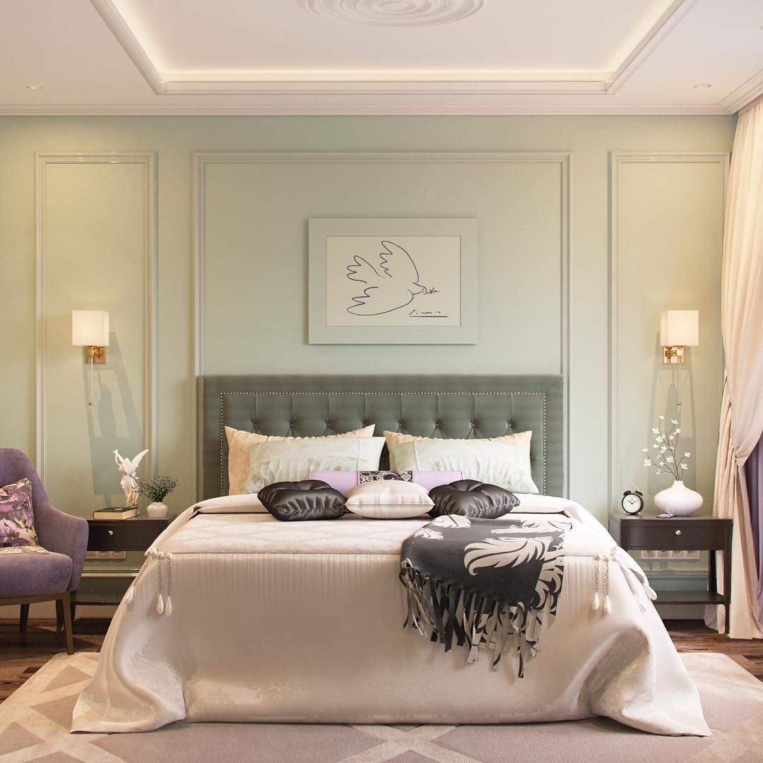 Дизайн спальни в пудровом цвете с выделением одной стены