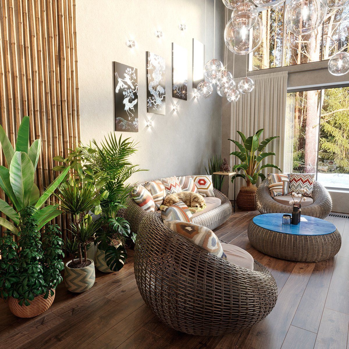 Крутой интерьер с растениями