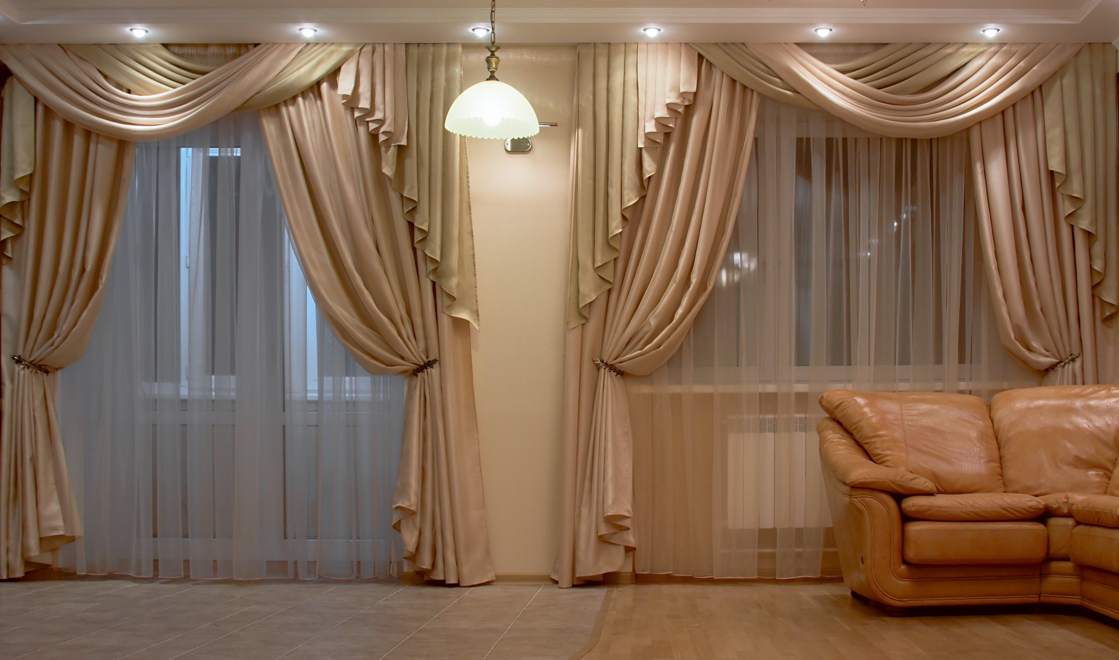 Шторы с ламбрекеном в гостиную классика на эркерное окно