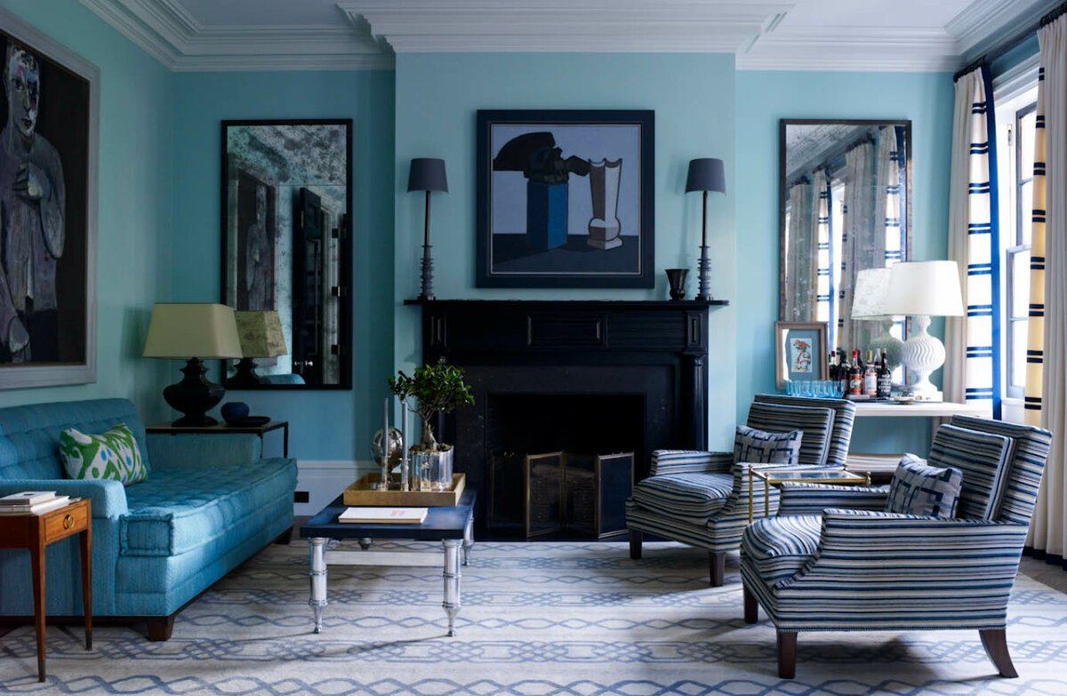 Синие стены в интерьере