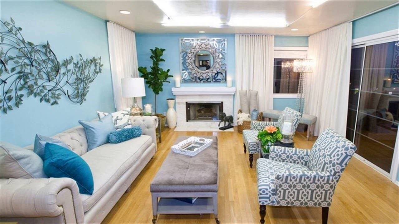 Светло голубые обои в гостиной
